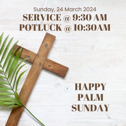 24th @ 9:30 am Palm Sunday Service & 10:30 am Potluck Brunch